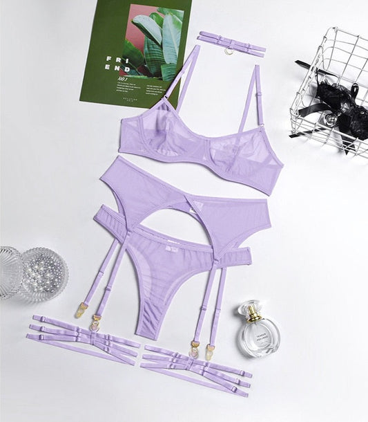 Mesh Transparent Embroidered Garter Set